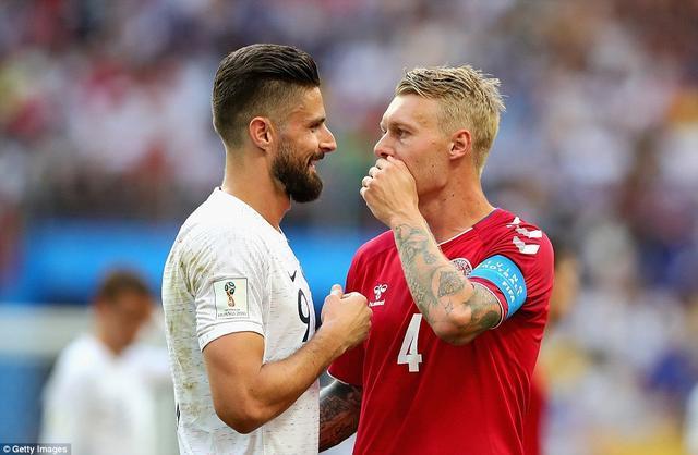 第15分钟,法国队迎来上半场最具威胁的一次进攻:卢卡斯·埃尔南德斯左路传中,吉鲁在小禁区内顺势吊射,皮球直奔球门左上角,但丹麦门将小舒梅切尔反应神速,单掌将球托出底线,吉鲁落地后双手抱头,满脸难以置信-1-2。第16分钟,勒马尔左侧角球传中,瓦拉内头球攻门高出横梁。此后的比赛进入长时间的中场拉锯——法国队控球率高达67%,但推进到丹麦禁区前沿后办法不多,吉鲁在中路被克亚尔和克里斯滕森牢牢缠住,格列兹曼回撤拿球后的分球也缺乏穿透力-24。